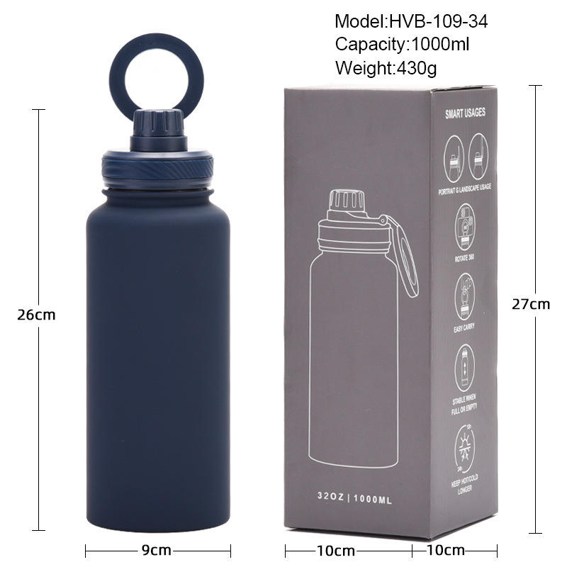 Wholesale Magnetic Lid 1000ml Gym Water Bottle 32oz Double Wall Stainless Steel Thermos Magnet Phone Holder Business Gifts
