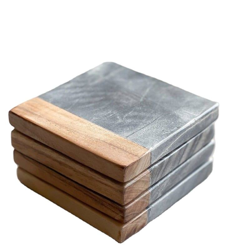 Wholesale High Quality Mango Wood Resin Coasters Set Wedding Table Top Cup Mat Accessories for Wine Beer Serving Kitchen Mat