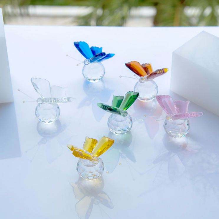 Wholesale Manufacture Crystal Crafts Color Crystal Glass Butterfly for Wedding Favors and Home Ornaments Gift