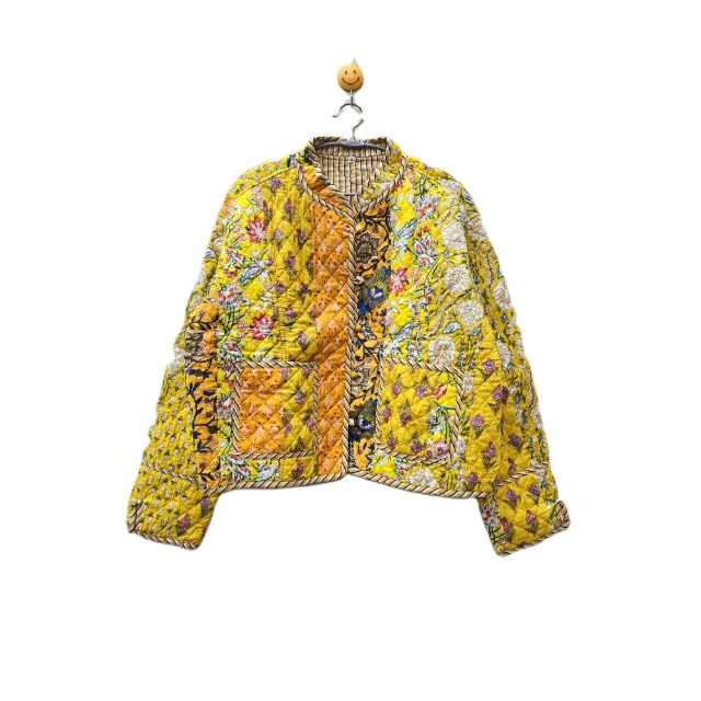 Wholesale Manufacture Indian Handmade Quilted Cotton Jacket Vintage Kantha Reversible Raw Edge Printed Woven Bohemian Jacket