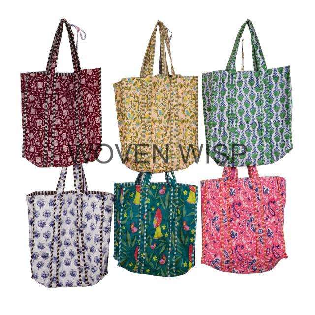 Women's Vintage Quilted Tote Shoulder Bag Hand-Printed Floral Cotton Eco-Friendly Sustainable Boho-Style Wholesale Manufacture