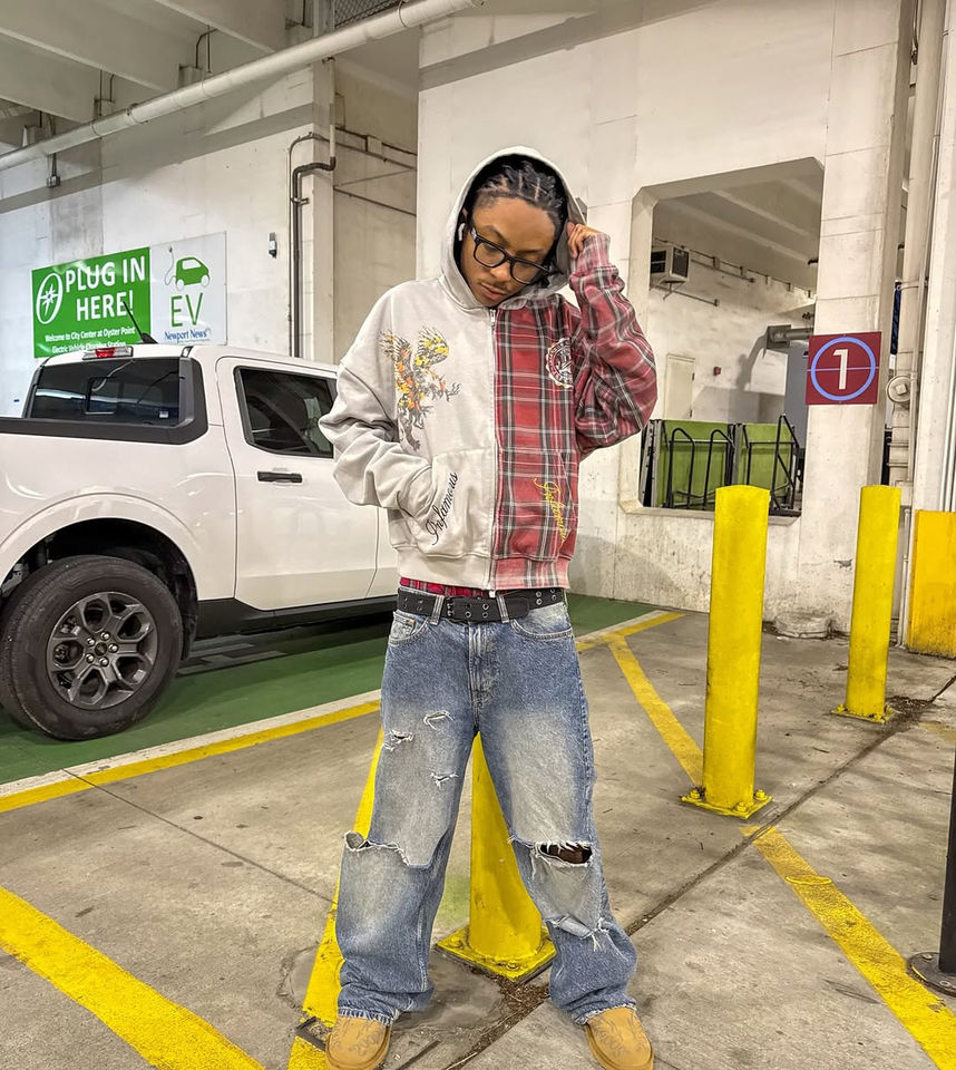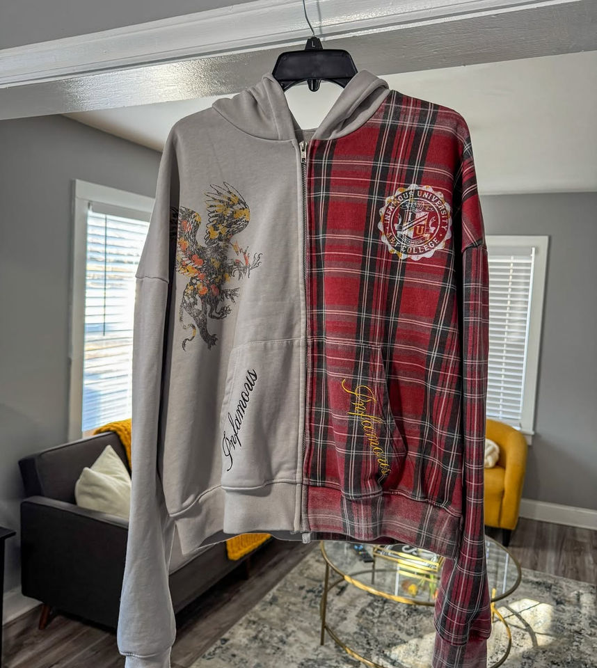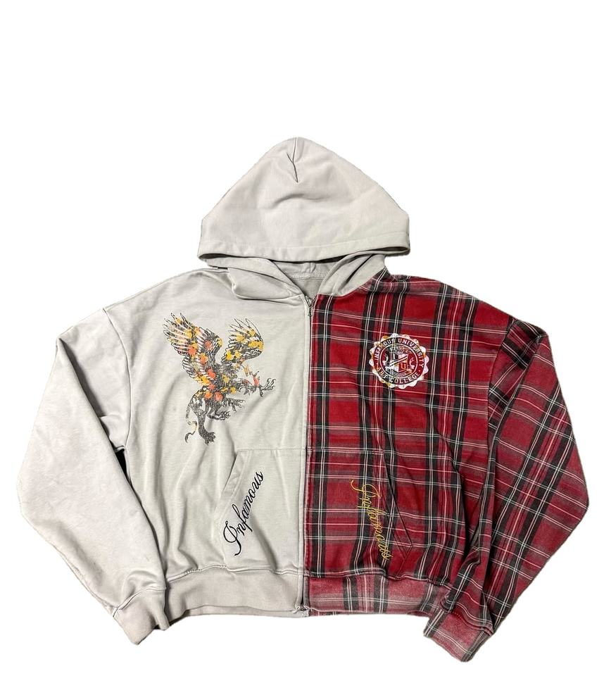 Wholesale Manufacturer Custom Pattern Printed Hoodie Plaid Printed logo Embroidery Oversize Cropped Fit 2 Tone Zip up Jacket Men