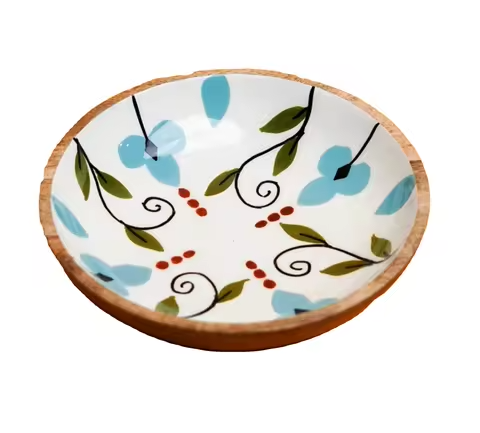 Wholesale Manufacturer Supplier of Handmade Fashionable Trending Mango Wood Enamel Print Custom Wooden Salad Bowl Serving Bowl