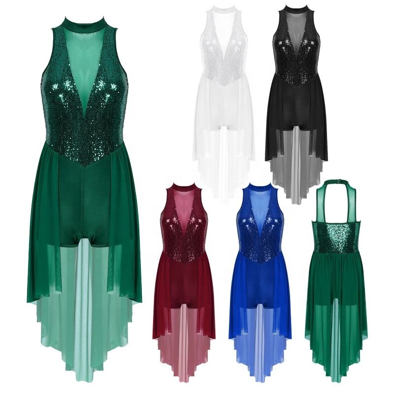 Wholesale Manufacturer Women Lyrical Sequin Lyrical Stage Dance Wear Clothes Leotard Dancewear Dance Dresses Costume