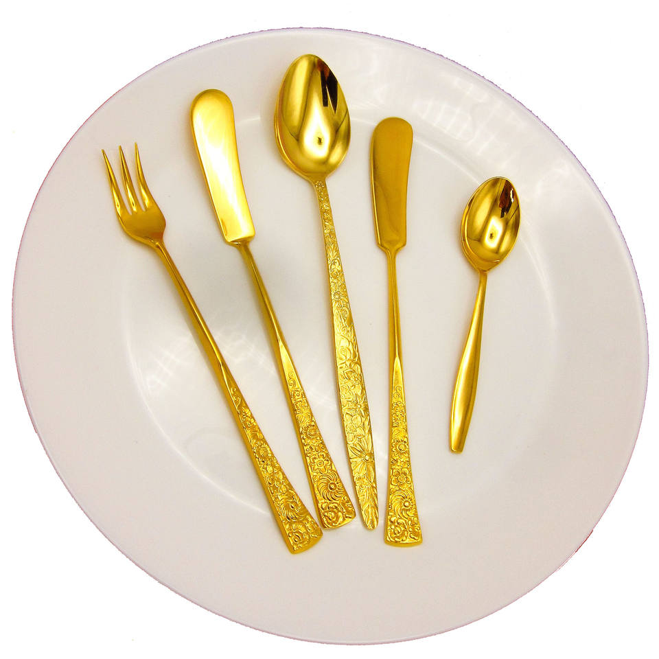 Wholesale Manufacturer in India Metal Flatware Stainless Steel Gold Plated Restaurant Cutlery Set for Dinner Use