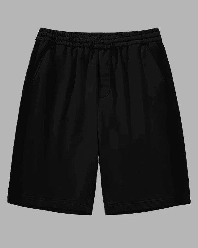 Text Detailed Men's Combed Cotton Capri Shorts Black