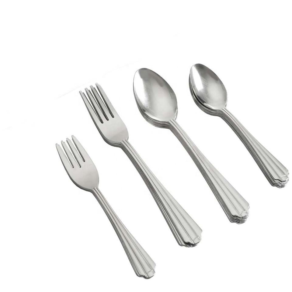Wholesale Matt Finished Silver Plated Stainless Steel Cutlery Designer Handle Customize Knife and Fork Spoons Set