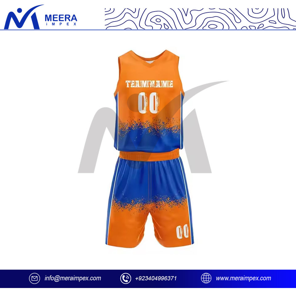 Wholesale Men Basketball Uniform Set with Custom Printed Team Name Mesh Fabric Jersey and Shorts Sportswear Kit for Training Use