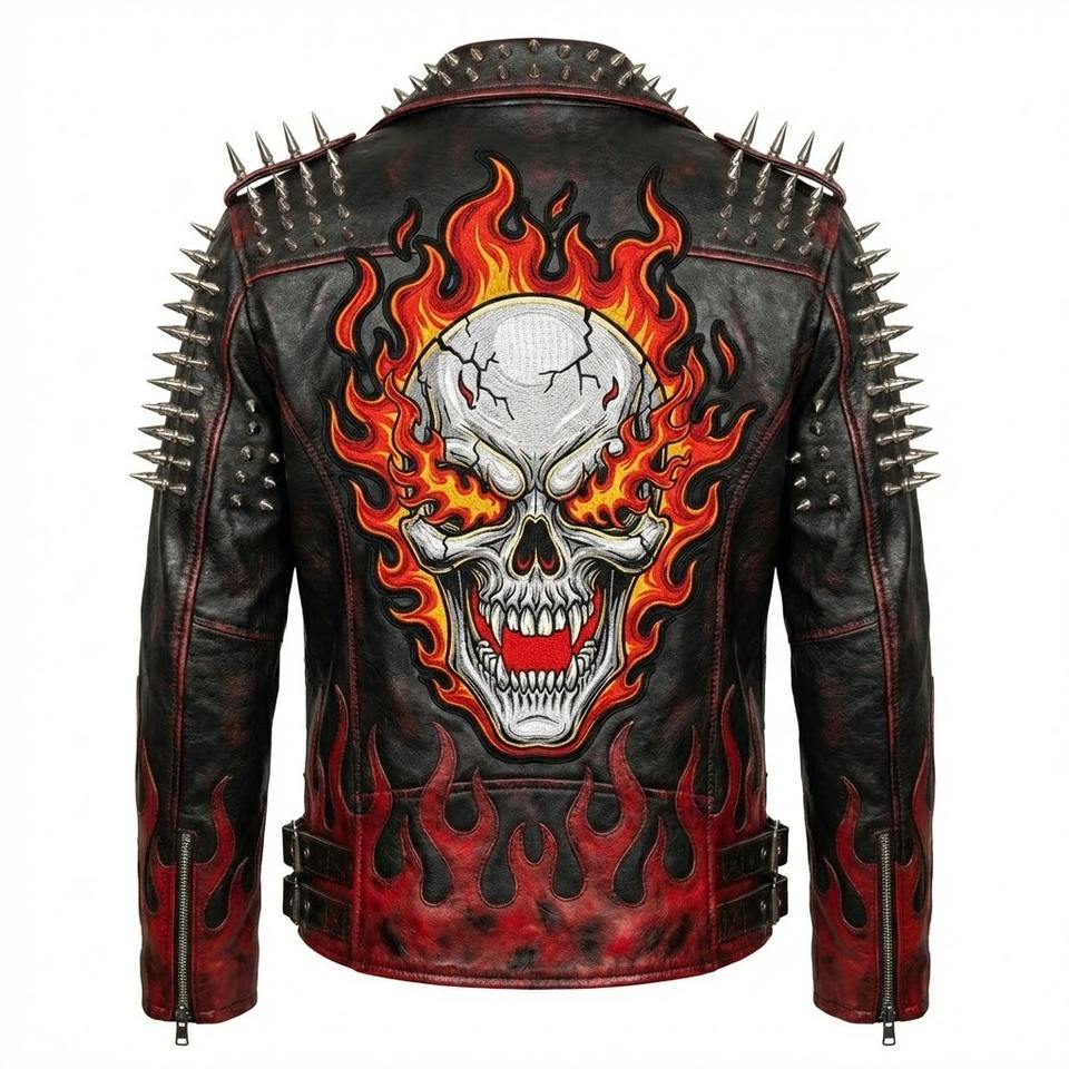 Wholesale Men Black Leather Jacket Motorcycle Biker Skull Embroidery Back Patch Streetwear Coat Vintage Cafe Racer Bomber Jacket