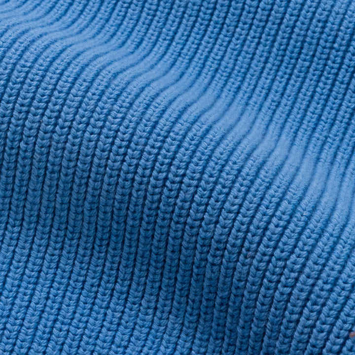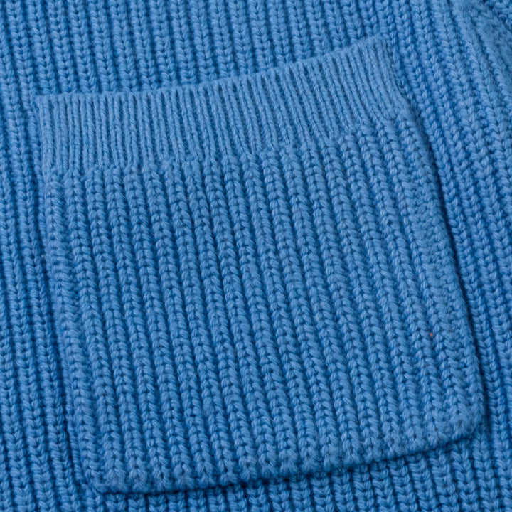 Wholesale Men Blue Knitted Sweater Cotton Long Sleeve Crewneck Cardigan Fashion Warm Winter Breathable Front Chest Pocket