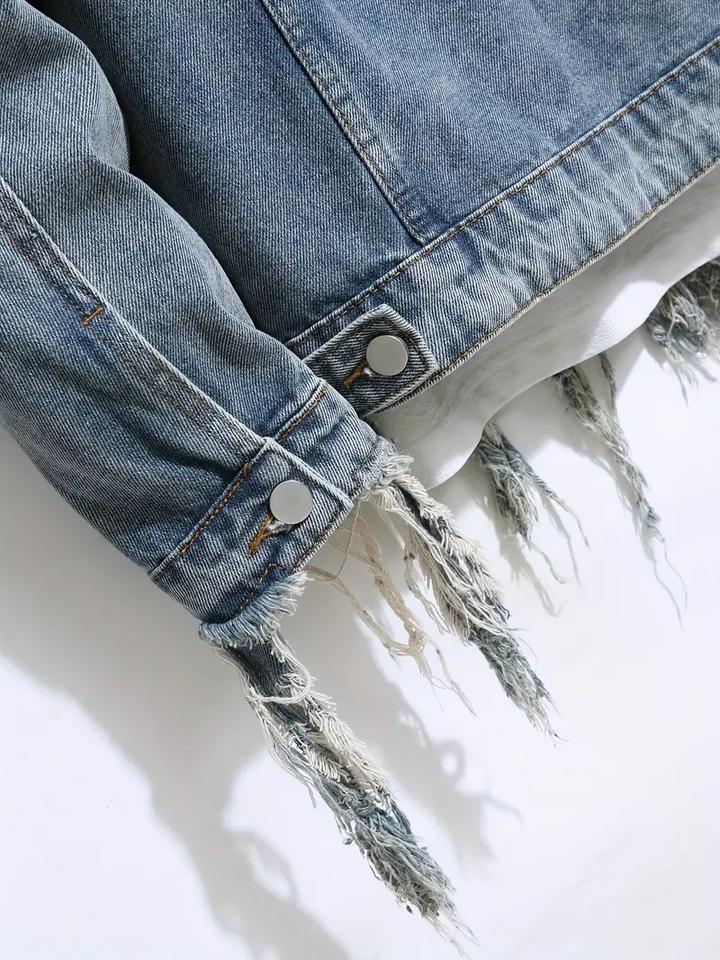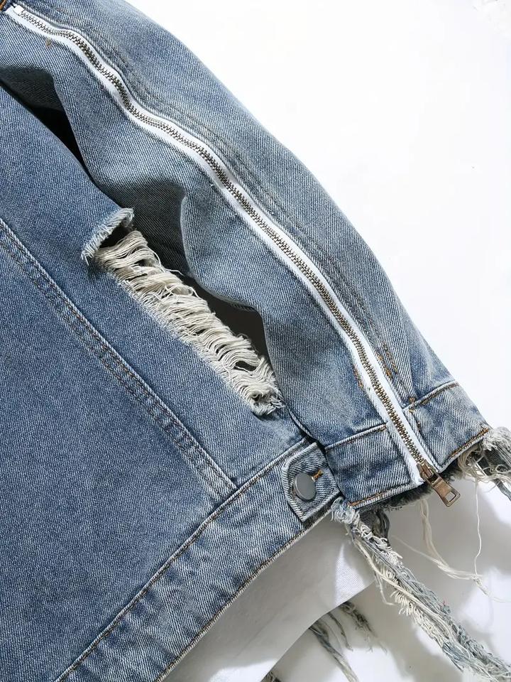 Wholesale Men Clothing Fashion Denim Distressed Jacket for Men Custom with Patchwork with Logo Top Quality With Low Price