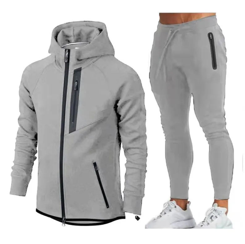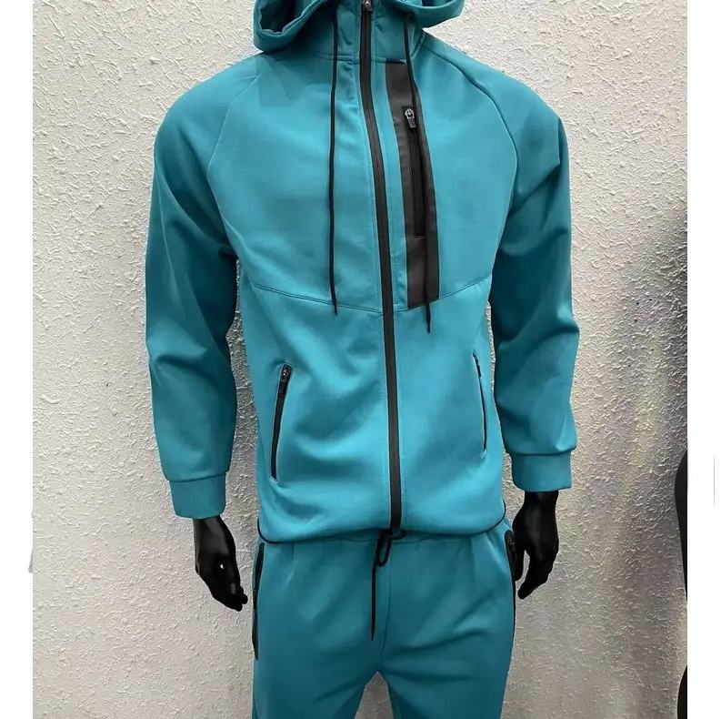 Wholesale Men Custom Logo OEM Slim Fit Jogging Wear Breathable Zipper Hooded Tracksuit for Men