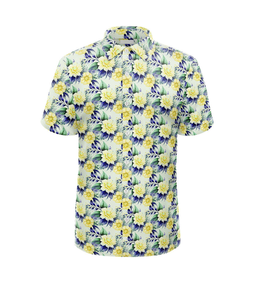 Wholesale Men Floral Print Golf Shirt Short Sleeve Lightweight Breathable Fabric Button Down Shirt for Golf and Leisure Wear