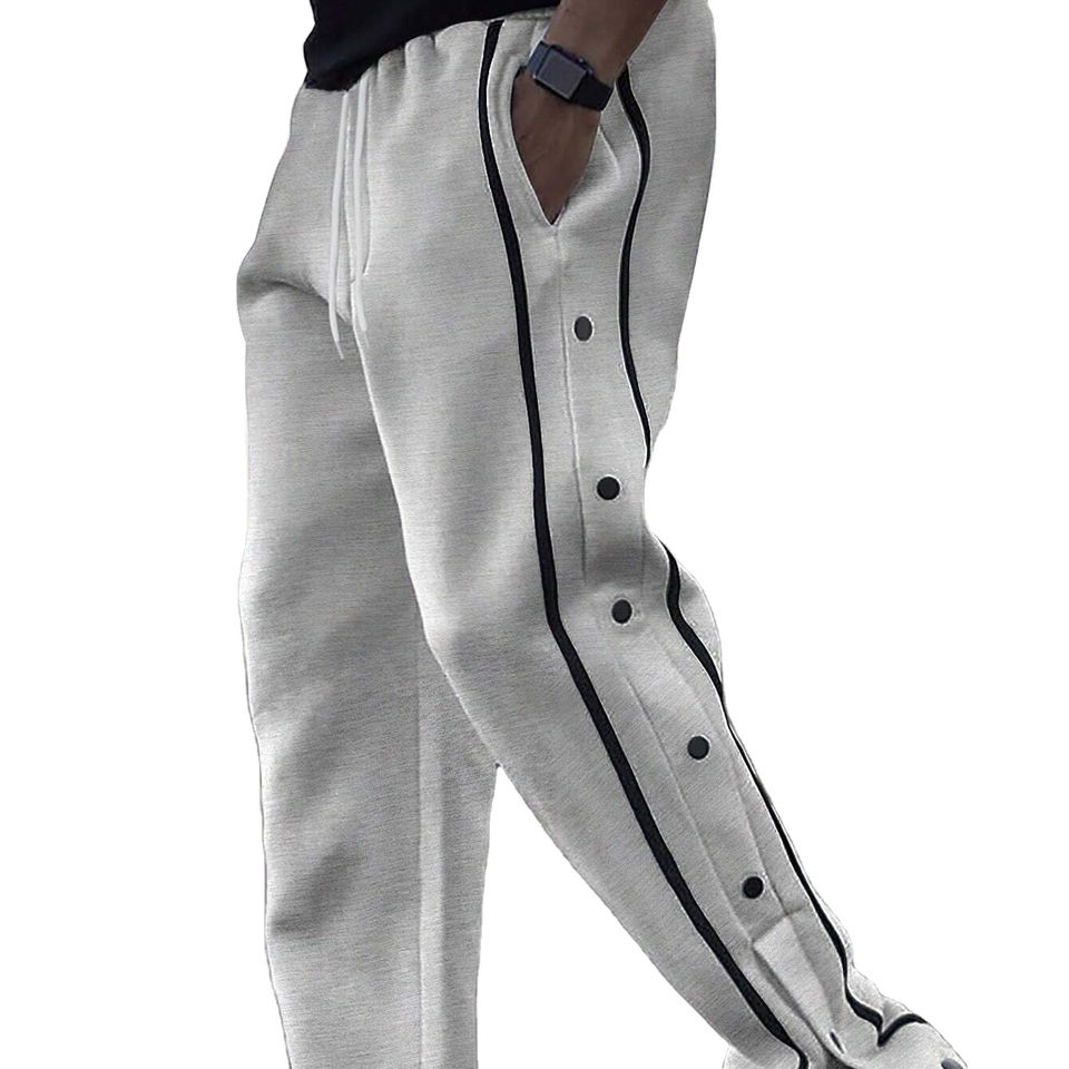 Wholesale Men Jogger Sporsity Loose Fit Men's Sweatpants With Contrast Piping, Button Side and Drawstring Waist Sweatpants Men