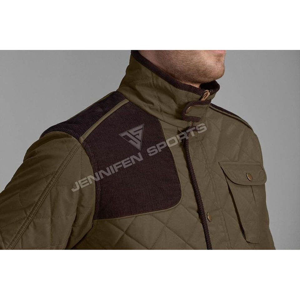 Wholesale Men Long Quilted Hunting Jacket Shell Fabric Cotton/Velvet Ribbed Zipper Closing Front Pockets Inside Polyester Lining
