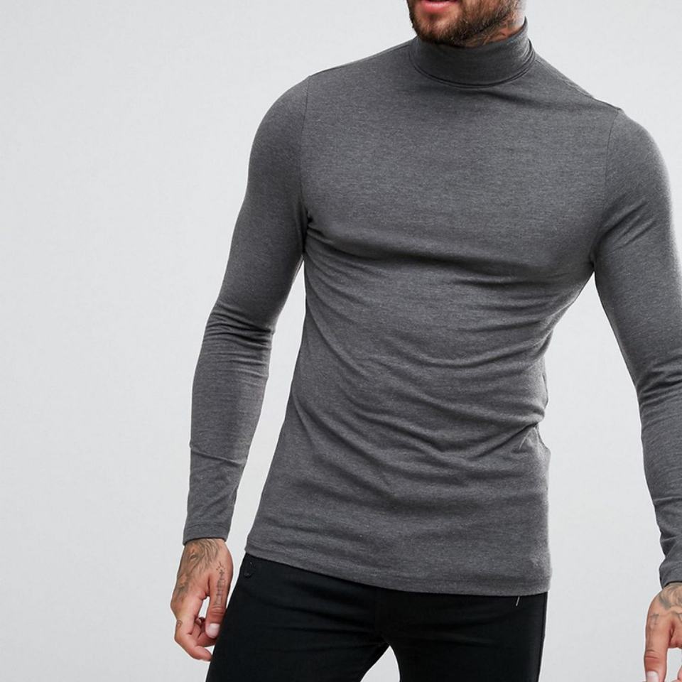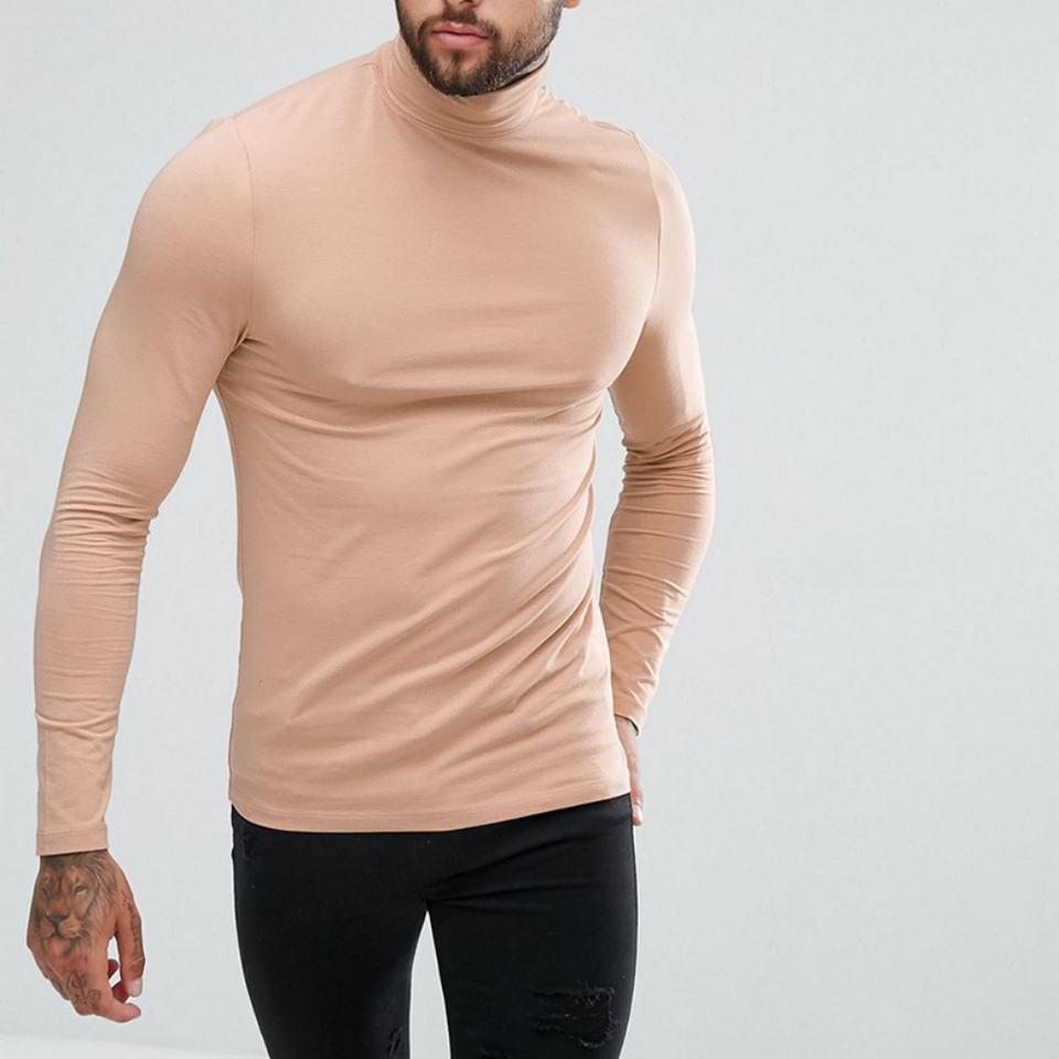 Wholesale Men Long Sleeve Muscle Slim Fit T-shirts in Bulk Custom Printing Turtleneck Plain T-shirts Man Tee Winter Garments