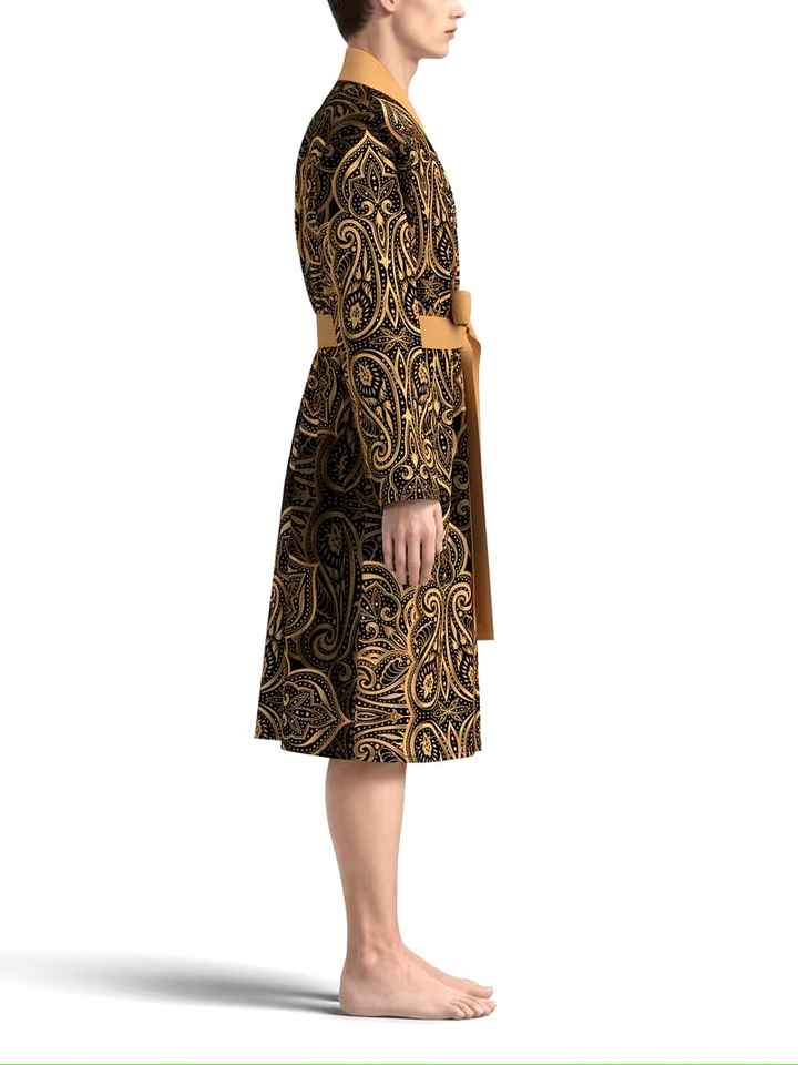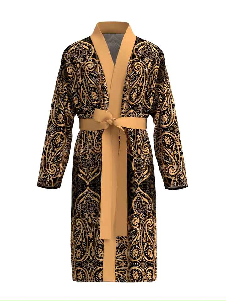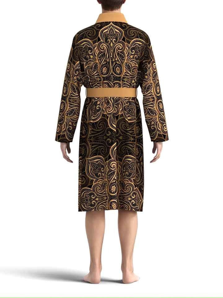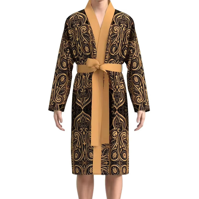 Wholesale Men Luxury Thick Satin Silk Sleepwear Gown Printed Breathable Lounge Robe All Season Causal Wear Spa Custom Logo