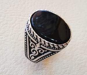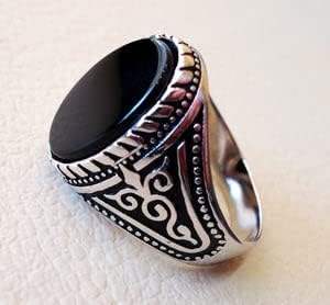 Wholesale Men Ring Natural Black Onyx Gemstone December Birthstone Ottoman Style Ring Christmas Jewelry 925 Sterling Silver Ring