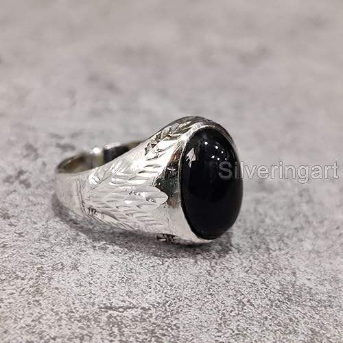 Wholesale Men Ring Natural Black Onyx Gemstone December Birthstone Father's Day Christmas Gift Jewelry 925 Sterling Silver Ring