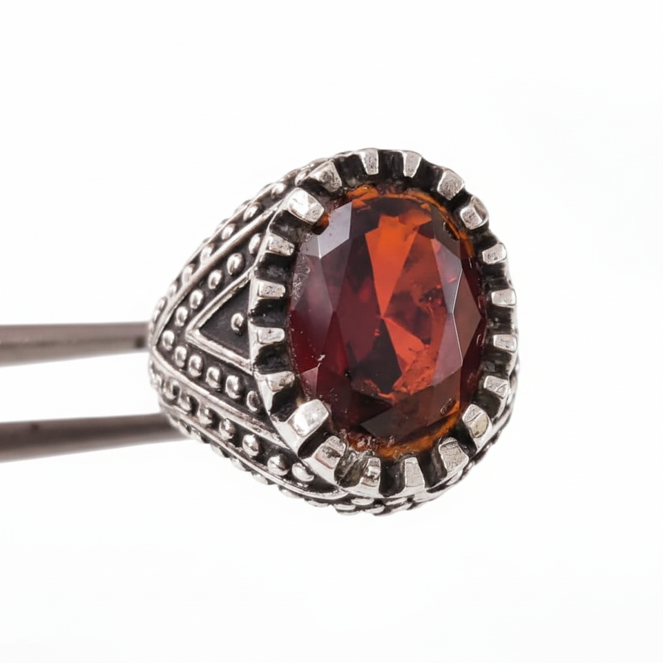 Wholesale Men Ring New Arrival Natural Garnet Gemstone January Birthstone Christmas Birthday Jewelry 925 Sterling Silver Ring