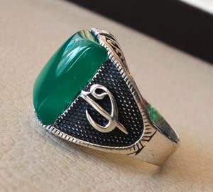 Wholesale Men Ring New Arrival Natural Green Onyx Gemstone December Birthstone Arabic Design Jewelry 925 Sterling Silver Ring