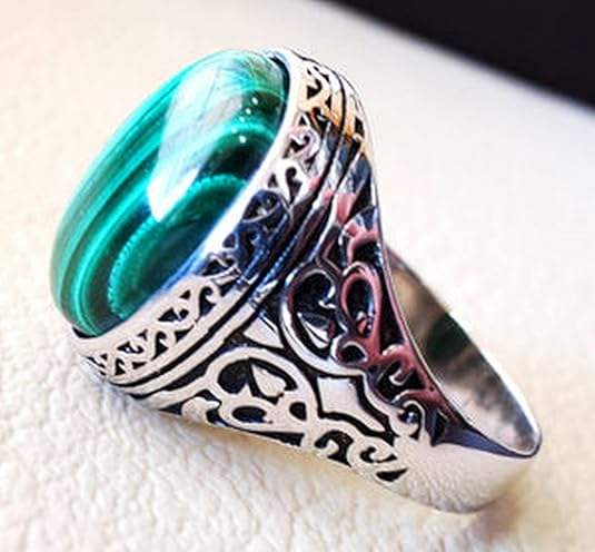 Wholesale Men Ring New Arrival Natural Malachite Gemstone Arabic Design Ottoman Style Birthday Jewelry 925 Sterling Silver Ring