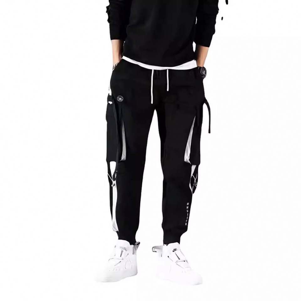 Wholesale Men Tape Loose Binding Pants Casual Trousers Punching Pants Patchwork Loose Cargo Pants Fashion Style