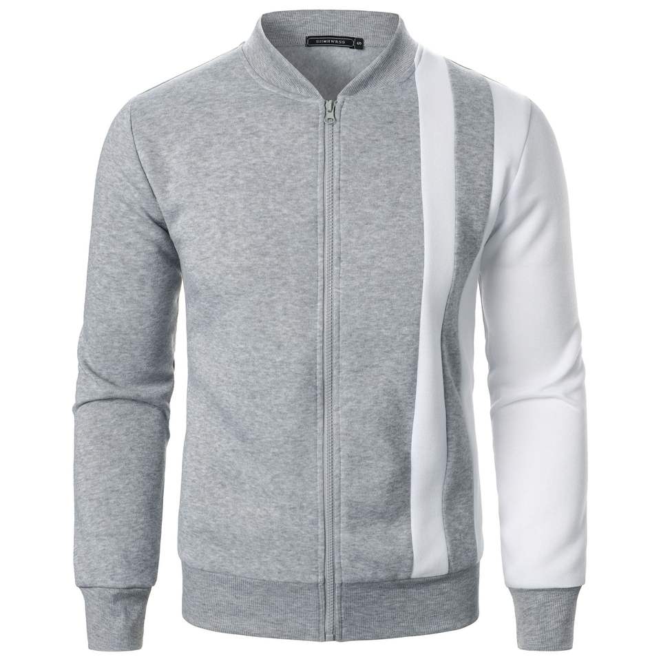 Wholesale Men Winter Zipper Patchwork Color Hoodie Men Printed Cardigan Stand Collar Casual Pullover Hoodie