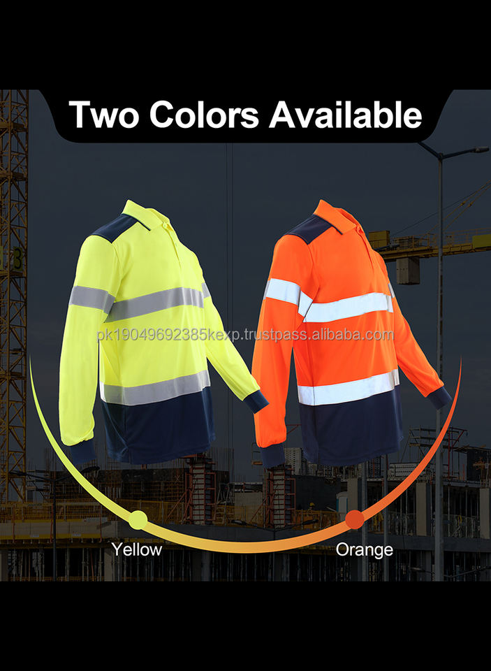 Wholesale Men Workwear Hi Viz Orange Reflective Safety Clothing Polo T Shirt Work Shirts