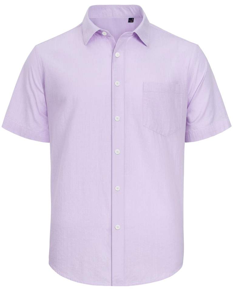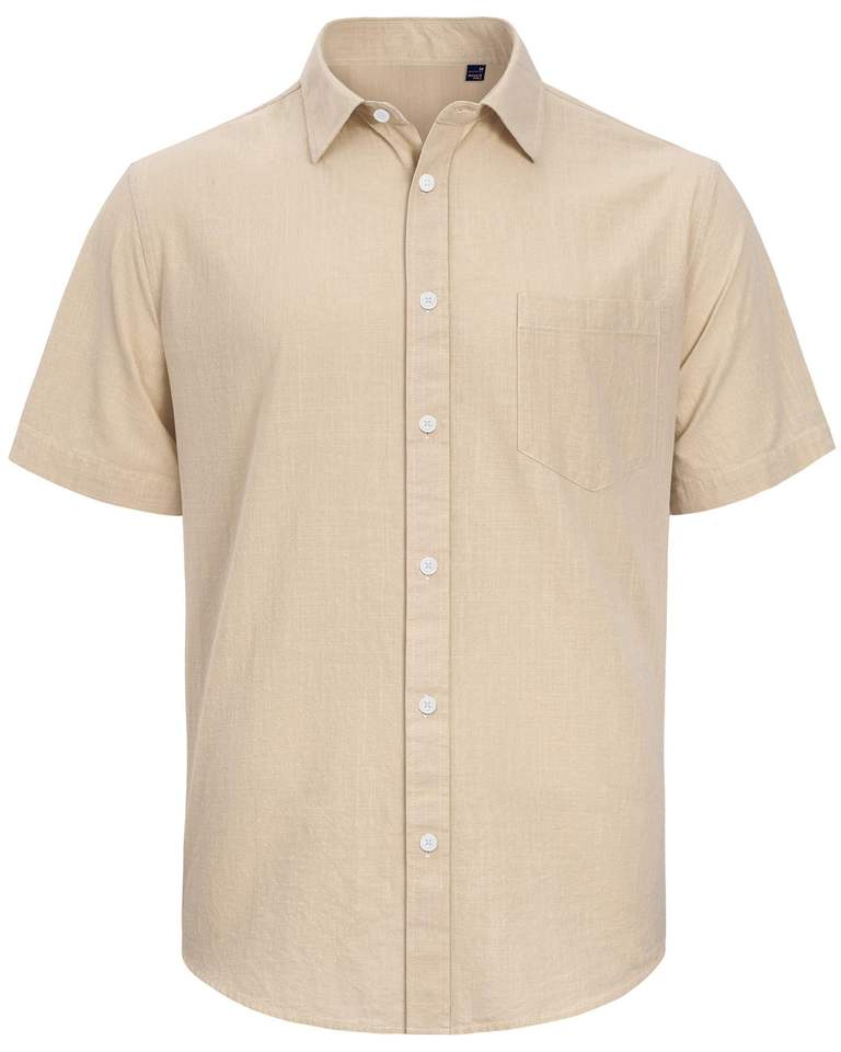 Wholesale Men's Anti-Wrinkle Cotton Linen Shirts Short Sleeve Button Up Vacation Beach Tops with Pocket