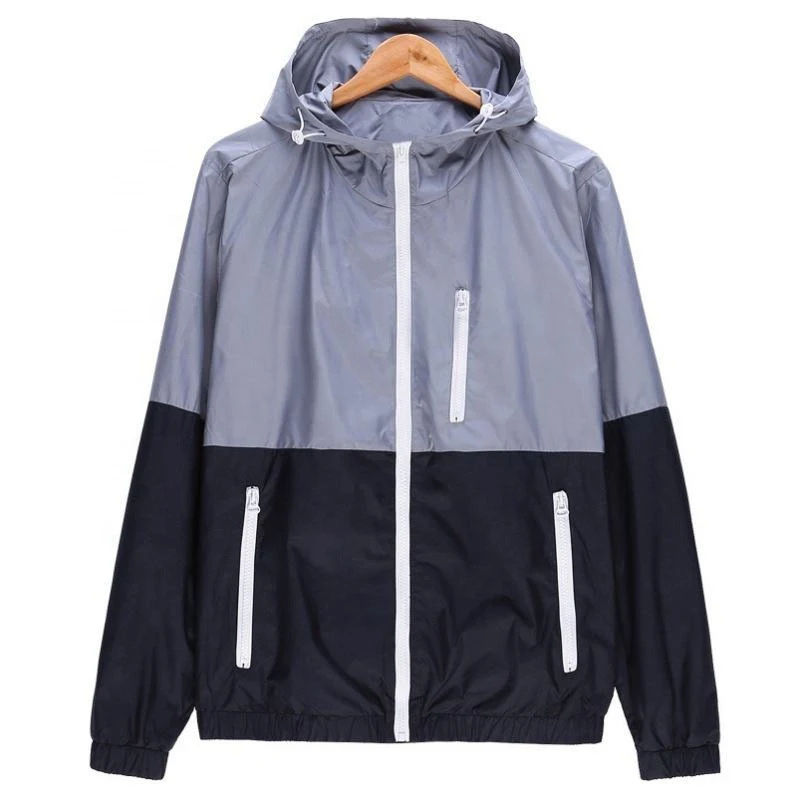 Wholesale Men's Blue Color Plain waterproof Windbreaker Jackets in Stand Collar Zipper up Nylon Material Men Jackets