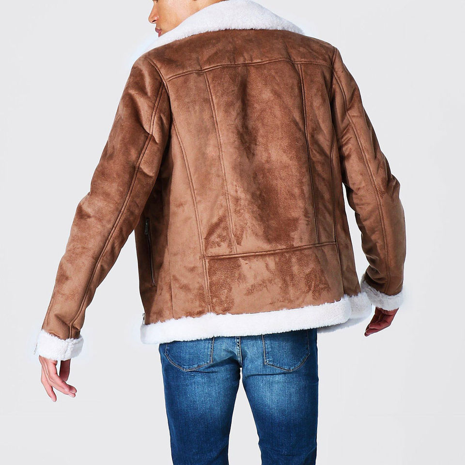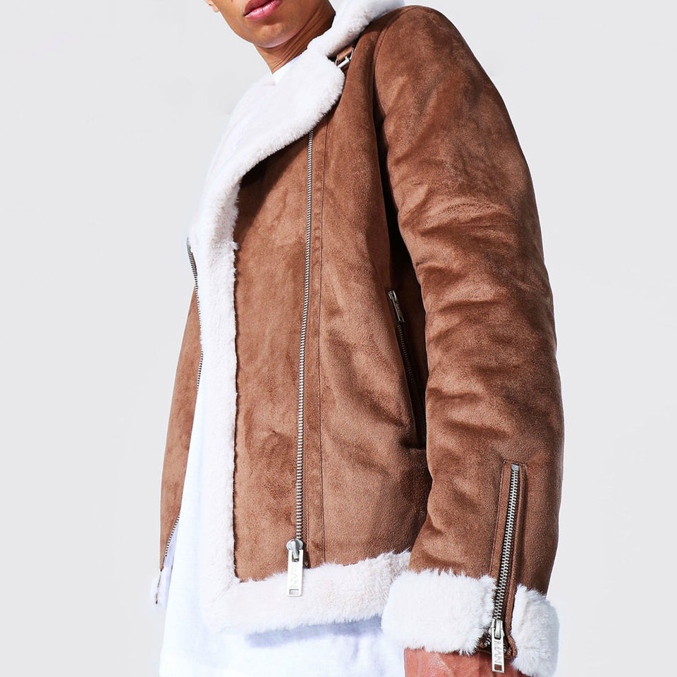 Wholesale Men's Breathable Outdoor Coated Genuine Leather Winter Jacket Custom Logo Front Casual Biker Sherpa