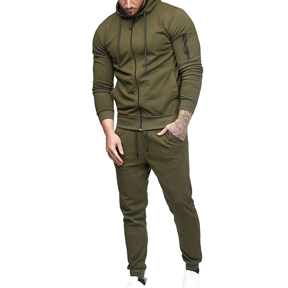 Wholesale Men's Casual 100% Polyester Hooded Tracksuit Breathable Custom Logo Drawstring Closure Solid Pattern For Winter Season