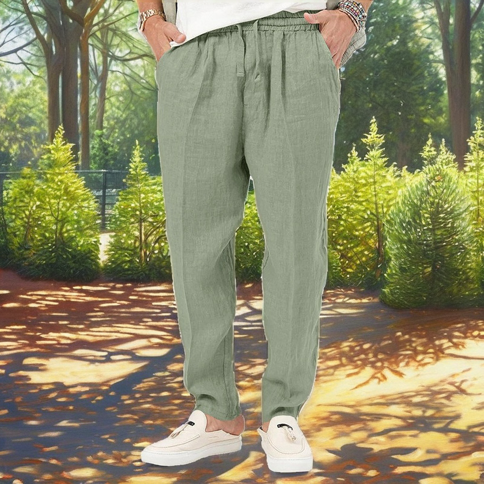 Wholesale Men's Casual Cotton Linen Jogger Sweatpants Khaki White Plus Size Lightweight Outdoor Flat Front Mid Waist Custom Logo