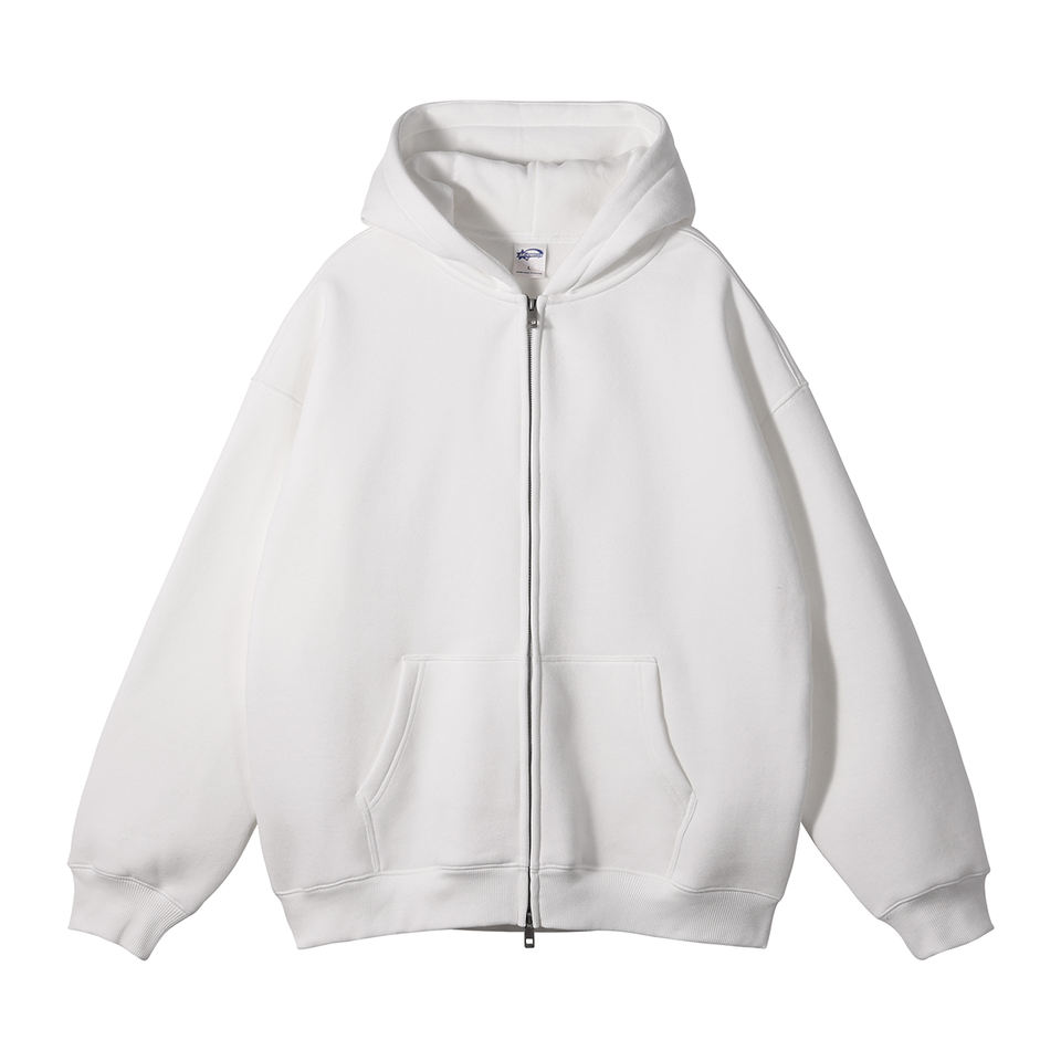 Wholesale Men's Casual Eco-friendly Hoodies Sweatshirts Vintage Grey Drop Shoulder Embroidery Heavyweight Zip Cotton Winter
