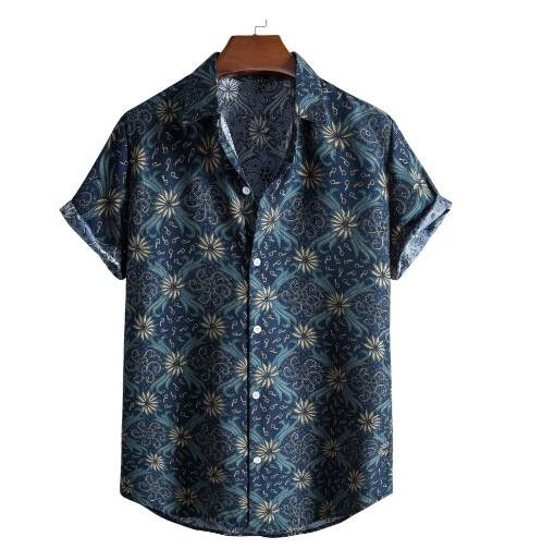 Wholesale Men's Casual Velour Shirts Loose Fitting Short Men's Shirts Sleeved Color Matching Embroidered Cuban Collar Design
