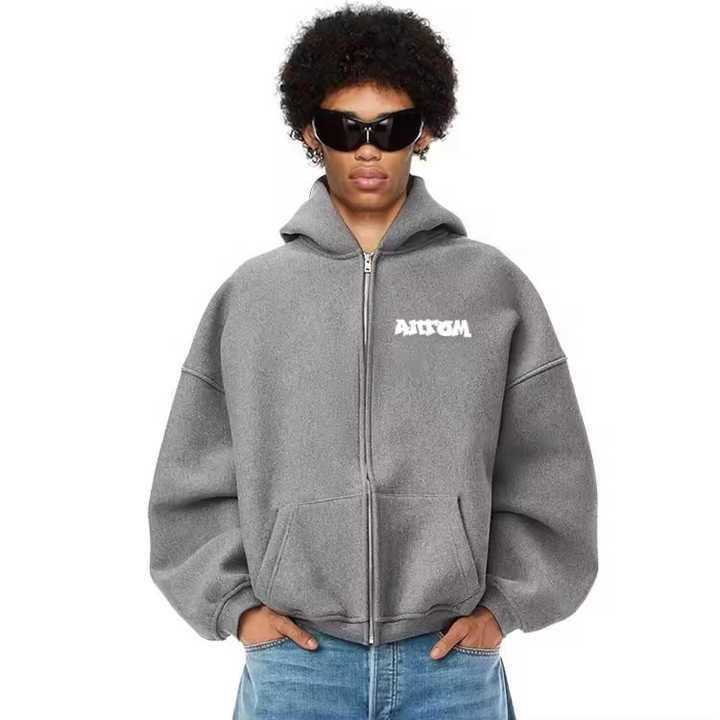 Wholesale Men's Casual Zipper-Up Hoodie Sweatshirt Long Sleeves Winter Cropped Boxy Style Solid Pattern 100% Cotton