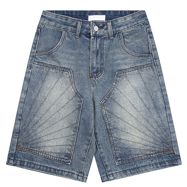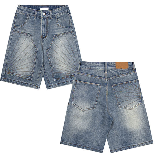 Wholesale Men's Denim Shorts Custom Summer Wide Leg Distressed Loose Straight Leg Vintage Stylish Heavyweight short for men