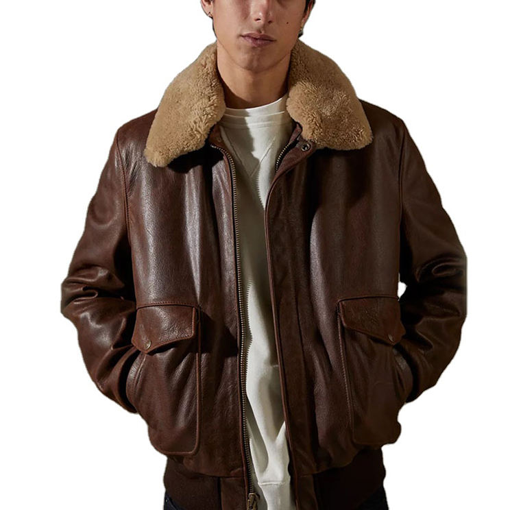 Wholesale Men's Formal Leather Jacket Custom Design and Logo Stand Collar for Winter