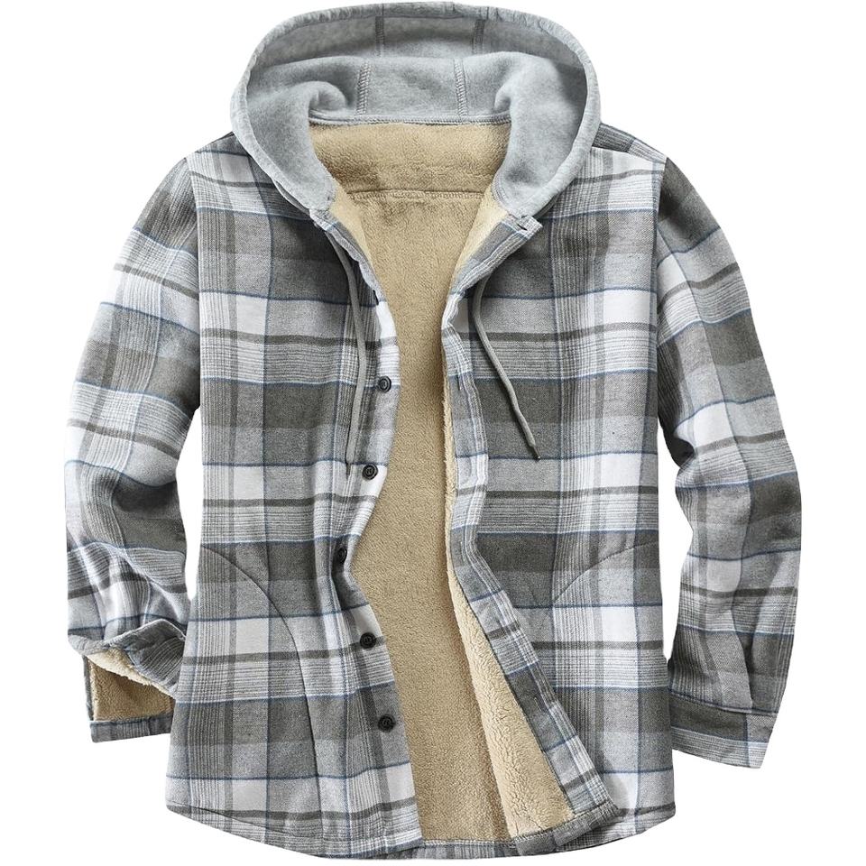Wholesale Men's Full-Zip Sherpa Fleece-Lined Flannel Shirt Soft Warm Plaid Cotton Hood Solid Pattern Plain Dyed Technique Zipper