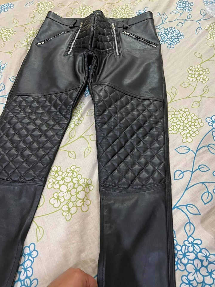 Wholesale Men's Genuine Leather Pants Button Fly Straight Windproof Eco-Friendly Breathable Low-Cost High Quality Cowhide