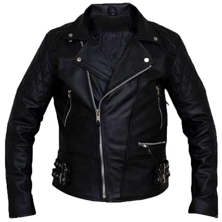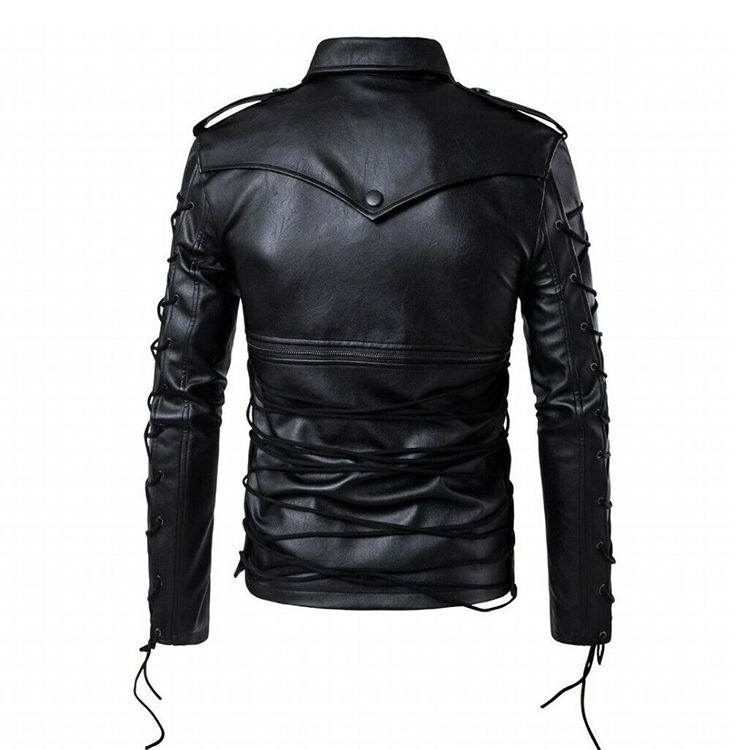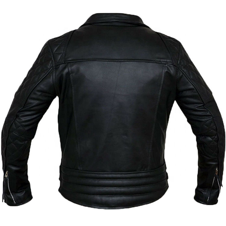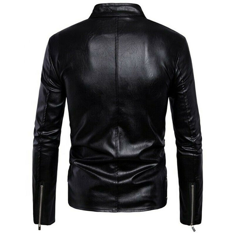Wholesale Men's High Street Style Sheep Skin Leather Jacket Stand Collar Long Length Front Logo Winter ODM Thin Zipper Closure