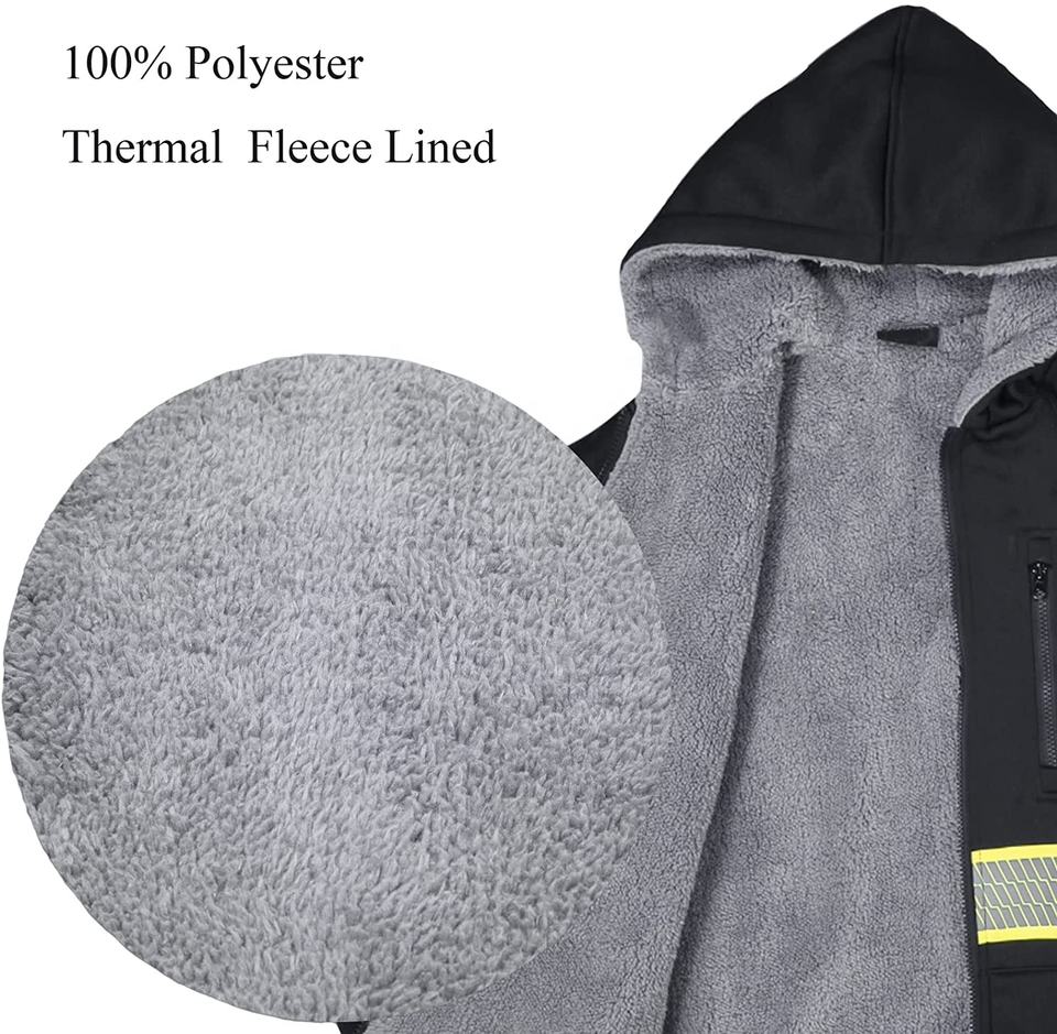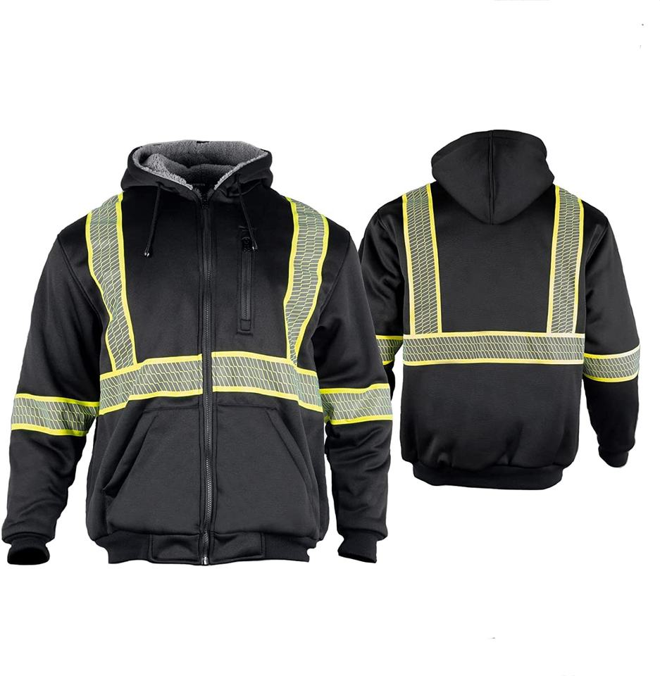 Wholesale Men's High Visibility Safety Reflective Sweatshirt Wool Fleece Zipper Jacket Hoodie Customizable Safety Vest with Logo