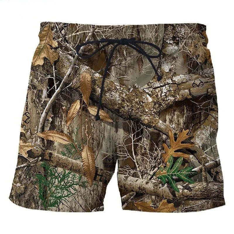 Wholesale Men's Hunting Shorts 9 Inch Quick Dry Camo Printed Shorts Drawstring Mens Rugby Hunting Shorts with Pockets