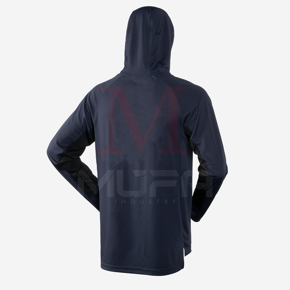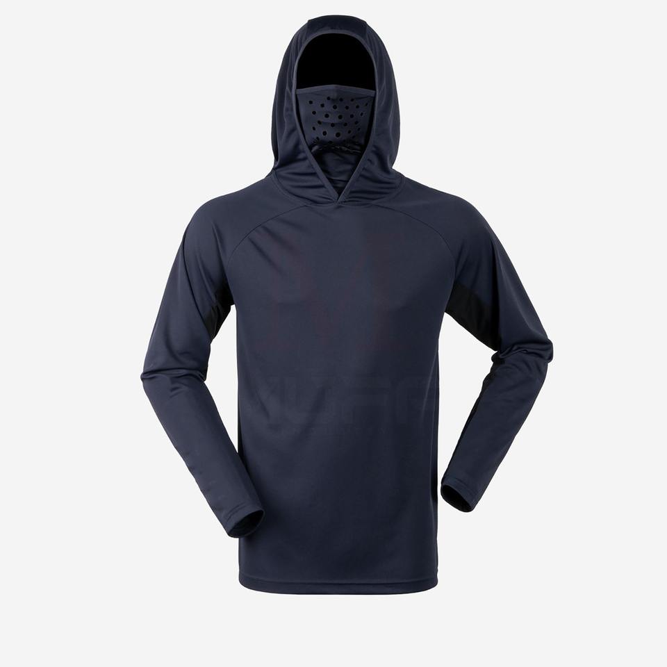 Wholesale Men's Long Sleeve Fishing Shirt UV Neck Hood Pullover Style Solid Pattern Plain Dyed Winter Season Pocket Design
