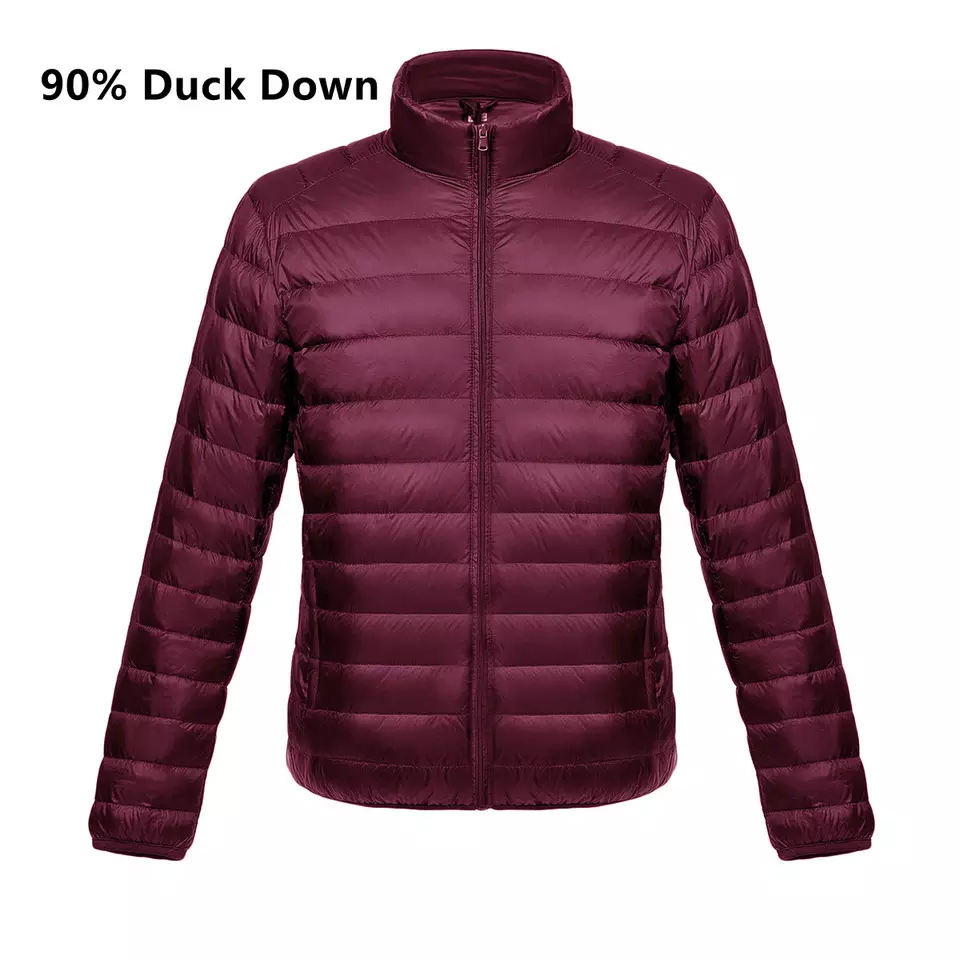 Wholesale Men's Nylon Black Hooded Winter Puffer Jackets Custom Logo Outdoor Warm Duck Feather Bubble Puff Filled Zipper Closure