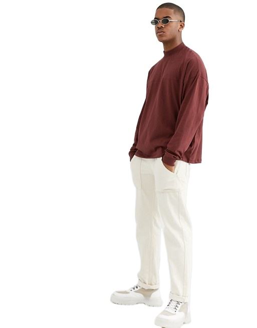 Wholesale Men's Ribbed Round Neck Oversized Long sleeves Cotton T-Shirts With Custom Logo