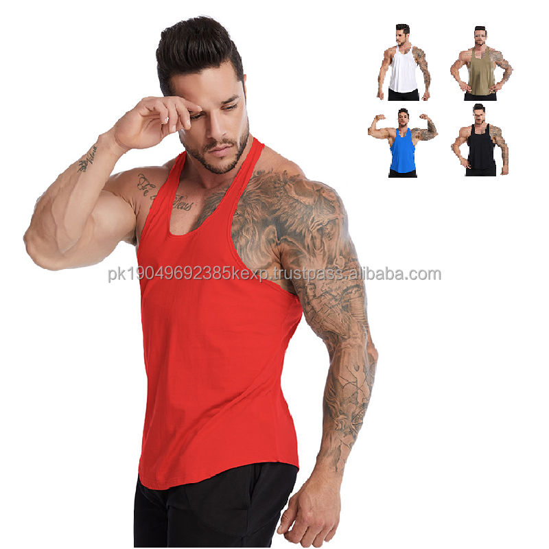 Wholesale Men's Sleeveless 100% Cotton Stringer Oem logo Custom Blank Solid Work Out OEM Sports Men Gym tank Top Singlet Vest