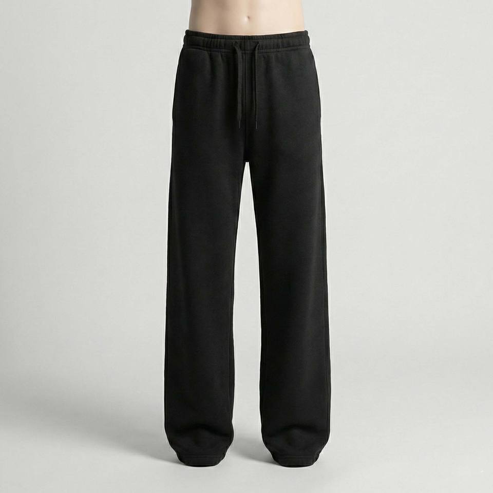 Wholesale Men's Solid Black Wide Leg Sweatpants Custom Heavyweight Cotton Loose Fit Baggy Mid Waist Formal Joggers