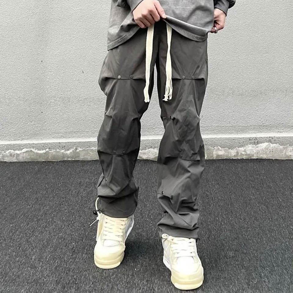 Wholesale Men's Streetwear Baggy Cargo Pants Grey Color Y2k Techwear Style With Multiple Pockets Wholesale
